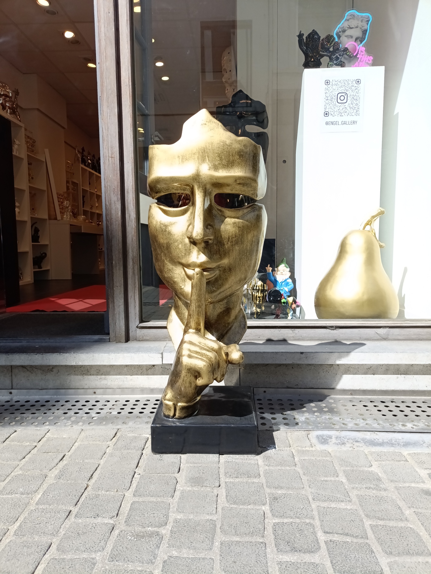 Als de we Grote Markt oplopen, wordt de hond woest wanneer hij een porseleinen beeld ziet staan van een kat. Hij staat er vijf minuten naar te grommen.