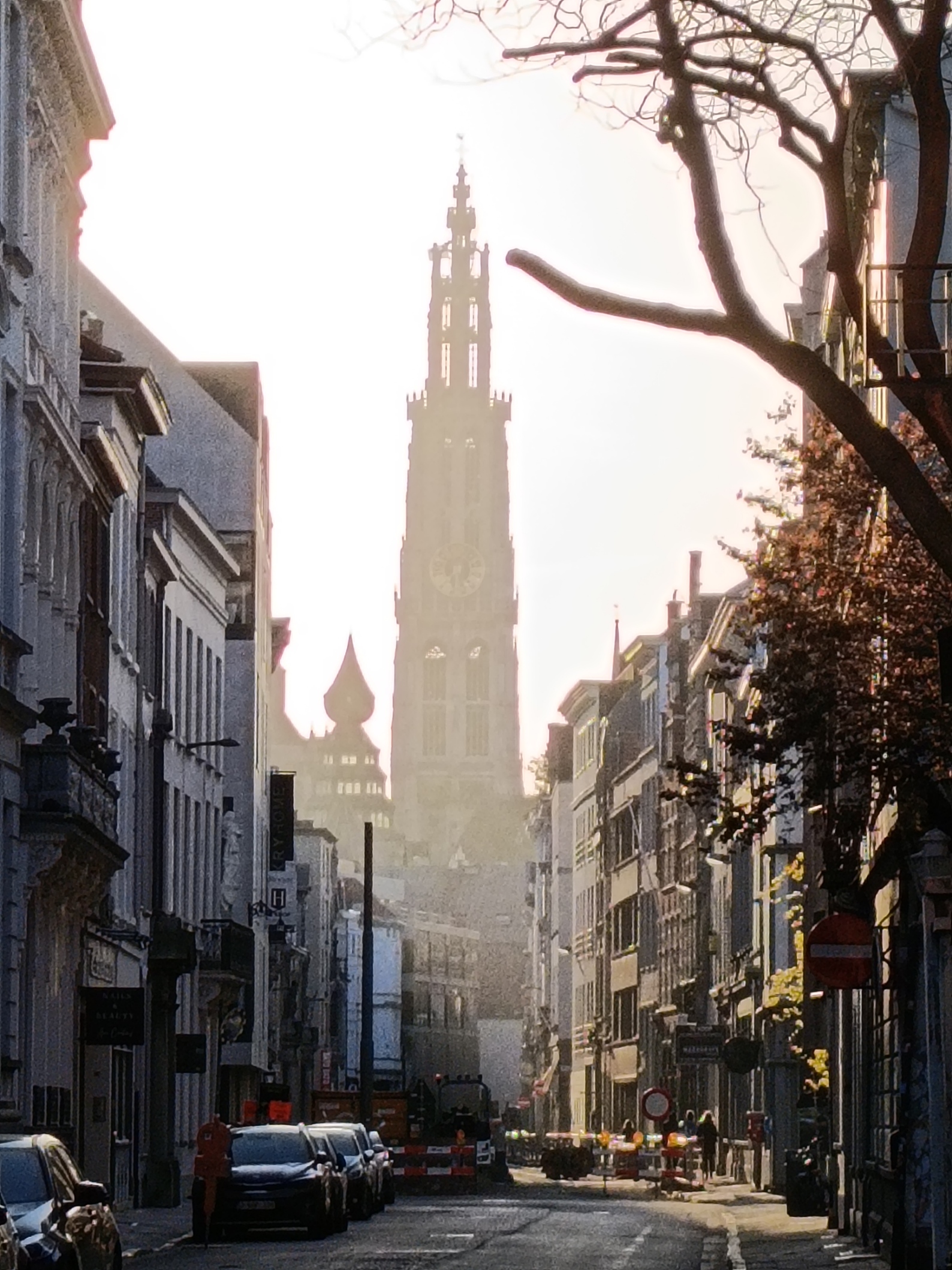 Elke ochtend stromen de vrachtwagens van de brouwerijen de oude binnenstad in om de terrrassen nat te zetten die eind van de middag door de toeristen en Antwerpenaren weer worden drooggemaald. Bij de Italiaan aan de overkant kun je lekker in de zon zitten.
